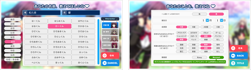 学園生活が始まる前に、名前や趣味・得意な教科などを入力しよう。